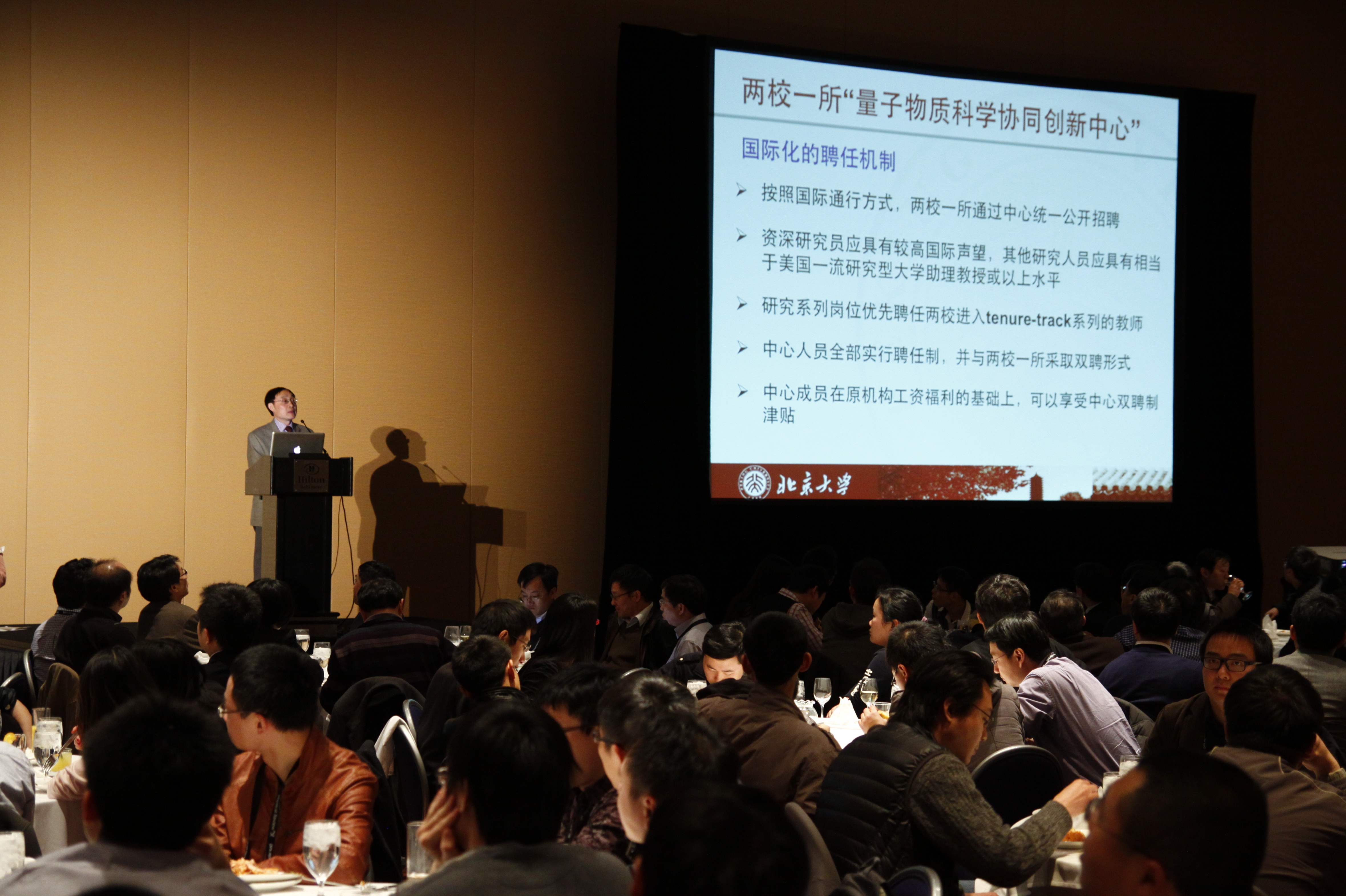 2013年美国物理年会(APS March Meeting)于3月在美国巴尔的摩召开。期间,北大、清华、中科院物理所(两校一所)依托该会议平台举办了引才宣讲活动。其中,联合主任谢心澄教授、中心骨干成员丁洪研究员及陈曦教授分别代表两校一所对“2011计划”及共建的“量子物质科学协同创新中心”给予了重点介绍,并鼓励国际优秀人才加入中心或来访交流。