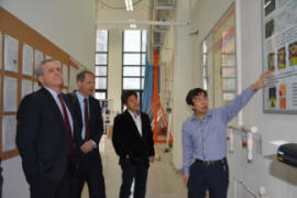 3月18日上午,加州理工学院校长Thomas F. Rosenbaum教授等一行4人到清华物理系和量子物质科学协同创新中心访问。Rosenbaum教授等首先参观了位于蒙民伟科技楼的量子科学与技术研究中心,物理系系主任陈曦向来访嘉宾介绍了中心的主要研究工作。随后,Rosenbaum教授一行人又参观了低维量子物理国家重点实验室和量子物质科学协同创新中心,中心成员季帅华介绍了实验室的工作进展。