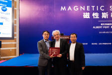 Albert fert教授,法国南巴黎大学法国南巴黎大学(Université de Paris-Sud,UPS)固体物理实验室(Laboratoire de Physique des Solides, LPS)荣誉教授,法国国家科学研究院(CNRS)及 Thales 公司首席科学顾、自旋电子学的创始人之一,因发现巨磁阻(Giant Magnetoresistance, GMR)效应荣获 2007 年诺贝尔物理学奖。在长达 50 余年的研究生涯中,Fert 教授在自旋电子学领域做出了诸多开创性贡献,共发表学术专著 7 部、超过 400 篇论文,他引次数近 2 万次,h-因子为75。其中,他发表的发现巨磁阻效应的论文(GIANT MAGNETORESISTANCE OF (001)FE/(001) CR MAGNETIC SUPERLATTICES,BAIBICH, MN; BROTO, JM; FERT, A; 等.:Physical Review Letters 61(21): 2472-2475,出版年: NOV 21 1988 )被国际顶级物理学刊物《物理学评论》评为 50 年来他引次数最多的 10 篇文章之一(引用频次5631次)。 目前, Fert 教授仍辛勤工作在科学研究的第一线,非常关注“磁性斯格明子”等自旋电子学新的研究方面的大战,深入开展下一代自旋电子器件的理论和实验方面的研究。