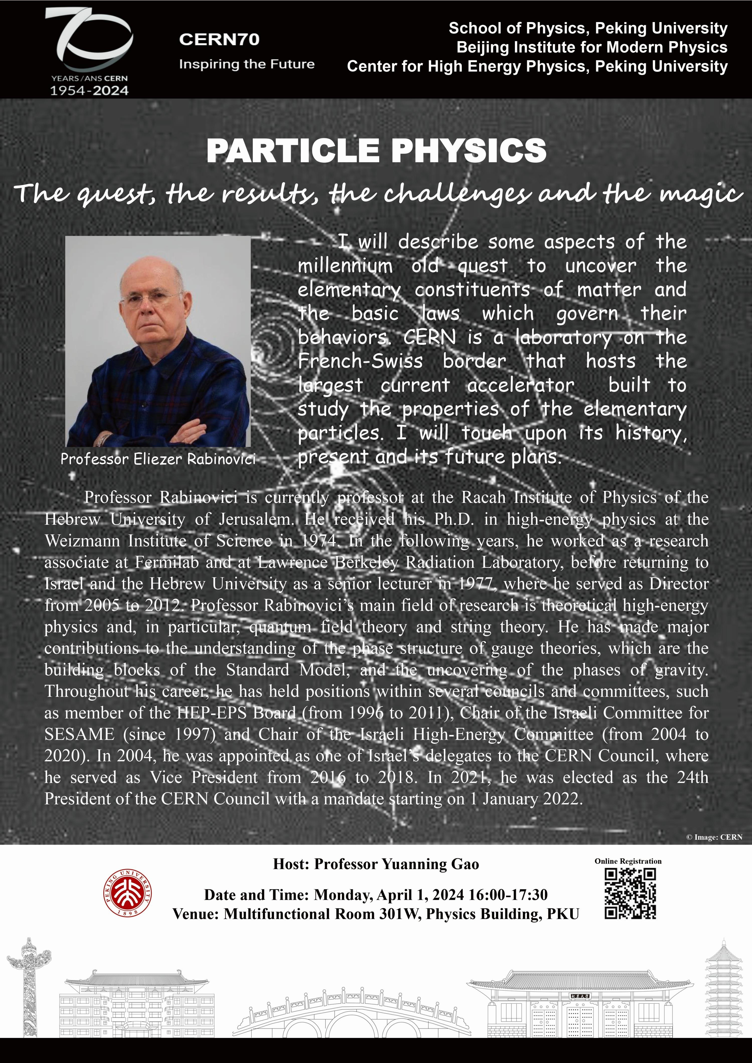 报告人:Eliezer Rabinovici教授(欧洲核子研究中心理事会主席)