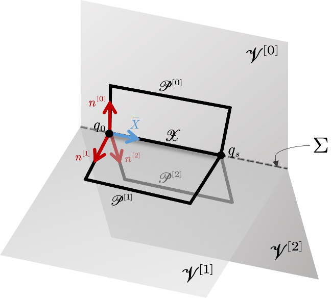 然而,与经典粘合不同,多时空粘合会改变交界处的微分结构,使得计算交界处的引力变得极为困难。为了解决这一问题,该研究提出并发展了“反向延拓法”,建立了“书页几何”,推导出多路径连接条件。如图所示,在书页几何的形式体系中,每一个被粘合的时空形象地称为一个“书页”,而所有时空粘合而成的整体则称为“书册”。在每个书页中,交界面的嵌入可以用“外曲率”进行描述,且存在唯一的法矢量,指向交界面在该书页中的垂直方向。反向延拓法是将书册嵌入到一个具有足够维度的外部流形中,通过严谨的论证,可以证明所有法矢量之间满足一定的代数关系,称为法矢量的连续性条件。任意选取一个书页,沿法矢量的反方向可以延拓出一个辅助的时空。该辅助时空的引力依赖于所有其他书页,而与选取的书页没有直接关联。因此,选取的书页与该辅助时空的连接可以视为两个不同属性时空的粘合,通过应用经典的Darmois-Israel连接条件,得出了所有书页之间的多路径连接条件。这一结果不依赖于被延拓时空的选择,也不依赖于具体的延拓方式和外部流形的构造,因此多路径连接条件是具有物理意义的内禀约束。在几何与拓扑方面,反向延拓法对时空粘合的前提限制非常宽松,同时具备较强的普适性、严格性和一般性。进一步,该研究又独立地使用作用量变分的方法,得到了完全相同的连接条件,为反向延拓法提供了交叉检验。随后,该研究将多路径连接条件应用于近年来在黑洞信息悖论发展中扮演关键角色的dilaton引力模型和Jackiw-Teitelboim引力模型,取得了一系列重要成果。
