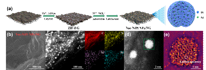 图1石墨烯负载镍掺杂缺陷铂纳米颗粒示意图