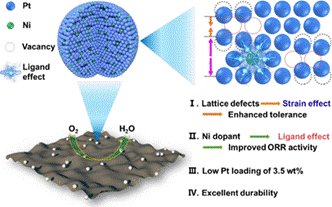 氧还原反应(ORR)是燃料电池阴极的关键反应,其效率直接影响着燃料电池的性能。目前常用的铂基催化剂存在成本高和易中毒失活等问题,严重制约了燃料电池的大规模应用。因此,发展高活性和高耐受能力的氧还原反应催化剂对于提升燃料电池性能至关重要。近年来,晶体缺陷在材料学领域中备受关注,但相关研究在铂基催化剂领域仍较为少见。