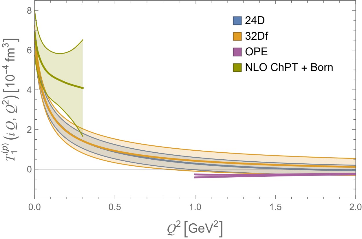 减除函数的格点QCD计算结果(24D、32Df)与手征微扰理论(ChPT)和算符乘积展开结果(OPE)作对比。格点QCD的计算结果大幅优化了非微扰低能区的理论预言精度。