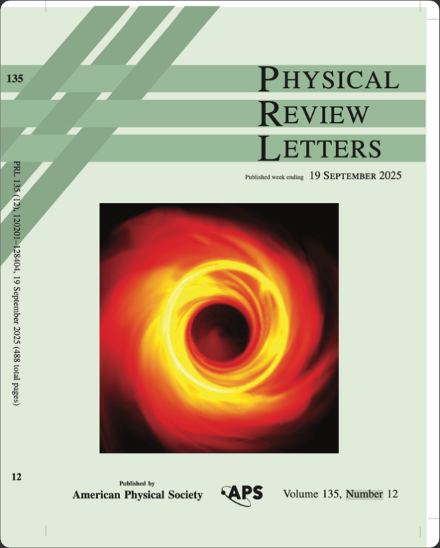 图1:《物理评论快报》第135卷第12期封面。其中封面图供图为舒菁组该论文作者。