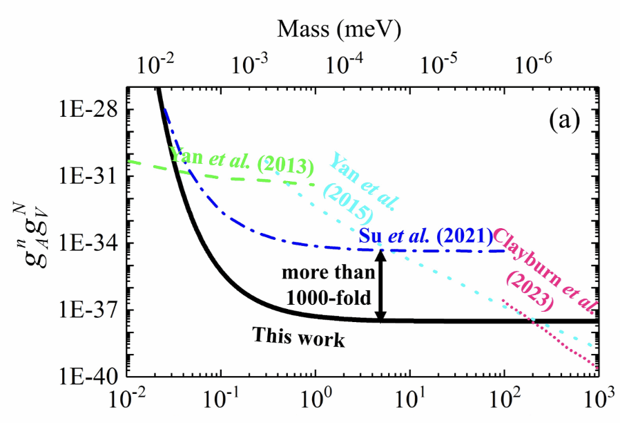 虽然实验未观测到宇称破缺的新相互作用信号,但在 Z′ 粒子质量小于 1 μeV 的力程区间内,实验获得了迄今最严格的限制(见图 2),相较此前国际最佳结果提升约 1000 倍。