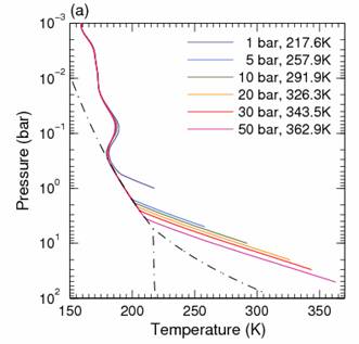 | Figure 2. Simulated vertical temperature profiles for Gl 581d.