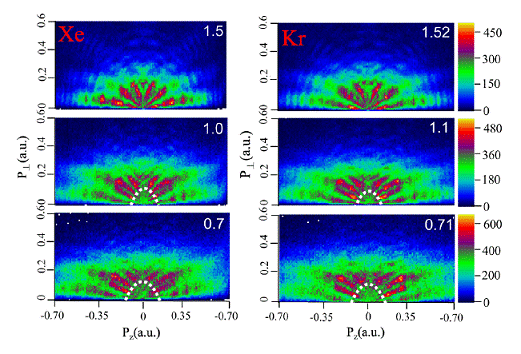零动量电子的相对产额随着激光光强的增加而减少的现象,我们称之为局域电离抑制。通过与中国工程物理研究院北京应用物理与计算数学研究所的刘杰研究员研究组合作,
