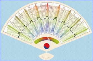 Materials上(Han X.B., et al. 24, 4707,2012)。如果把自由弯曲的ZnO微米线中观察到的应变梯度效应地总结成一个扇面,能够形象地表达这种在拉伸、压缩应变作用下ZnO材料的发光峰能量的系统变化规律,如图2扇坠中所揭示,发光峰位移的能量ΔE正比于应变梯度β的大小。