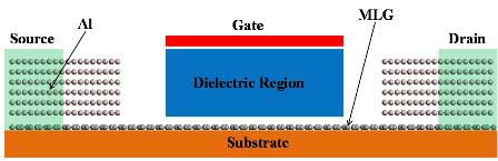 石墨烯具有极高的载流子迁移率,可用于制作高响应速度的射频器件。射频晶体管的重要参数之一是截止频率,一般可通过缩小沟道长度来提高。目前实验上石墨烯场效应管的沟道长度最小已做到40nm,得到最大截止频率为300GHz。但是场效应管截止频率并不总是随沟道长度变小而增大,剪裁缩短到某一极限长度时,受短沟道效应的制约,截止频率有时候会出现饱和。石墨烯场效应管截止频率是否也在沟道裁剪缩短到某一极限长度时出现饱和,目前仍然未知。另外目前实验上制备的短沟道石墨烯场效应管的输出特性曲线是不饱和的,这大大降低了器件的性能。