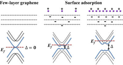 图:通过单面吸附金属原子打开和调节多层石墨烯的能隙