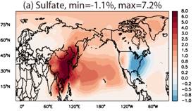 对北半球近地面大气中的硫酸盐颗粒物浓度的百分比影响。