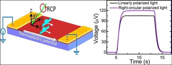 图2,拓扑绝缘体Bi2Se3中圆偏振光增强的光热电效应 (Nano Letters DOI:
