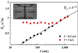 107, 136603)。最近,通过极低温条件下的电输运测量,他们发现InAs/GaSb边缘态中的电子行为具有拉廷格液体的特征:边缘态电阻随温度的降低和测量偏压的减小呈指数规律的增加。由于量子自旋霍尔绝缘体边缘态电子本身具有螺旋的性质(即特定自旋的电子只能向特定方向运动),这使得其不同于以往发现的拉廷格液体,故被称为“螺旋拉廷格液体”。