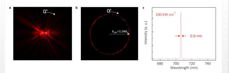 图1:纳米激光器实空间(a)、动量空间(b)和频率空间(c)成像图。来源:Chen et al., 2017, Science