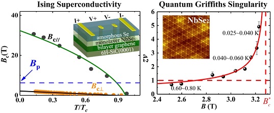 量子材料科学中心王健研究组与合作者在大面积单层二硒化铌晶体中观测到伊辛超导和量子格里菲思奇异性的共存