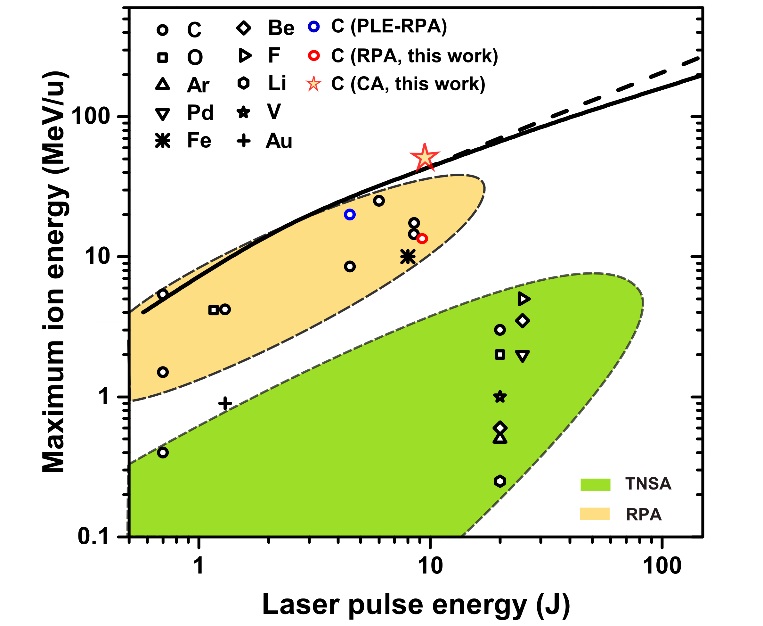 物理学院颜学庆/马文君团队利用级联加速新机制打破飞秒激光驱动碳离子能量记录