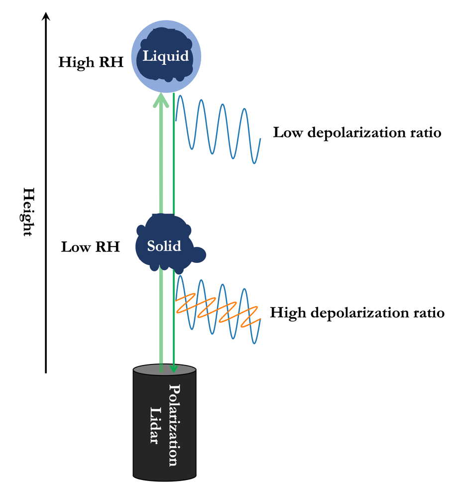 气溶胶的相态与颗粒物的化学组分和环境的相对湿度有关。目前对于颗粒物相态的测量,通常仅限于地面采样观测,缺少垂直空间方向上颗粒物相态的探测手段。在颗粒物浓度相对较高的大气边界层内,垂直方向上相对湿度往往有很大的变化,气溶胶的相态也一定存在很大差异。