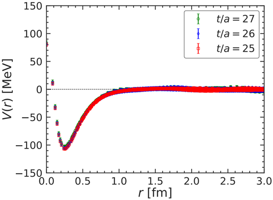 北京大学物理学院技术物理系、核物理与核技术国家重点实验室孟杰教授课题组长期从事原子核理论研究,在原子核结构的相对论描述等方面取得一系列重要成果,曾获高等学校科学研究优秀成果奖(科学技术)一等奖等。日本理化学研究所初田哲男(Tetsuo Hatsuda)教授课题组在基于格点量子色动力学(quantum chromodynamics, QCD)研究强子-强子相互作用方面有很高的国际声誉。自2018年起,双方在中国科技部与日本理化学研究所共同资助下展开联合研究,致力于从格点QCD出发,探索相对论形式的重子-重子相互作用,进而实现原子核性质的相对论第一性原理描述。
