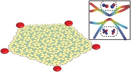 北京大学物理学院理论物理研究所黄华卿研究员课题组近期与犹他大学刘锋教授合作,对准晶体中的高阶拓扑态展开一系列探索,提出通过设计具有不同轨道特征的双重能带反转实现高阶拓扑绝缘体的通用机制。该机制对于具有奇数、偶数重旋转对称性的晶体和准晶均适用,特别是能够得到与准晶特殊对称性(如五重或八重旋转)相兼容的角模数目。以p和d轨道为例,联合研究团队通过构造以轨道角动量为赝自旋的有效模型,分别在Penrose型的五重准晶(图1)和Ammann−Beenker型的八重准晶中观察到拓扑角态。此外,数值计算还证明,高阶拓扑的双重能带反转机制可以被扩展到其他高角动量的轨道和具有不同对称性的其他晶格。由于该机制不依赖于强自旋轨道耦合,因此这类高阶拓扑准晶态有望在结构精确可调的分子准晶体以及无自旋的光子和声子超材料中实现。