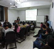 2013年11月1日晚8点半,由物理学院研究生会举办的2013-2014学年第一期(总第51期)“萃英”学术沙龙在物理楼南208举办。和窗外寒冷天气形成对比的是208会议室里的热烈氛围,特别是一年级新生显示出了很高的热情。本期学术沙龙的嘉宾是光学所10级直博生刘永椿以及凝聚态物理10级直博生孟杰两位师兄。他们都有丰富的科研经历和优秀的学术成果,通过对自己科研成果和经历的介绍为到场的师弟师妹们确定自己的课题研究方向、制定研究计划提供了不少经验和很好的参照。