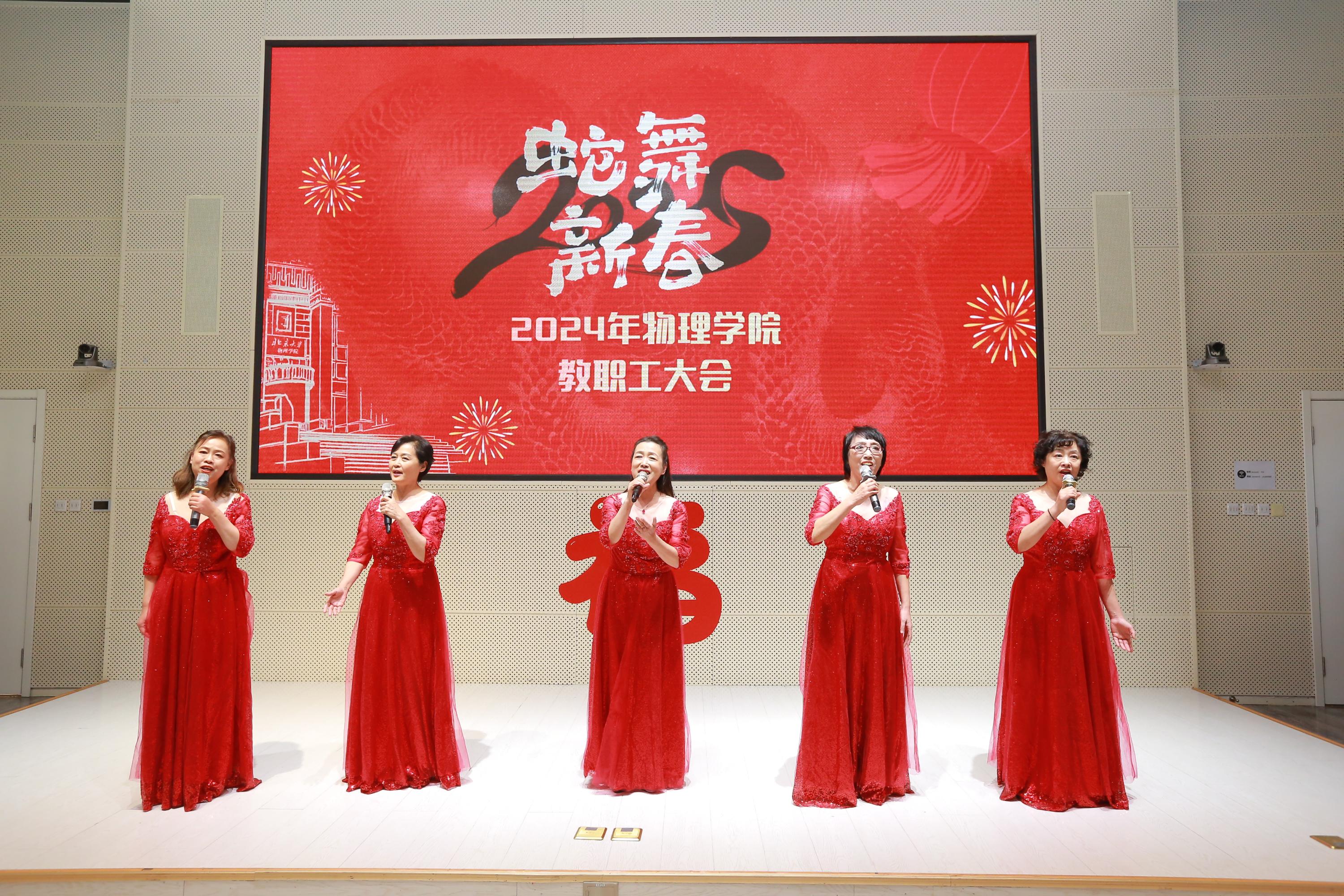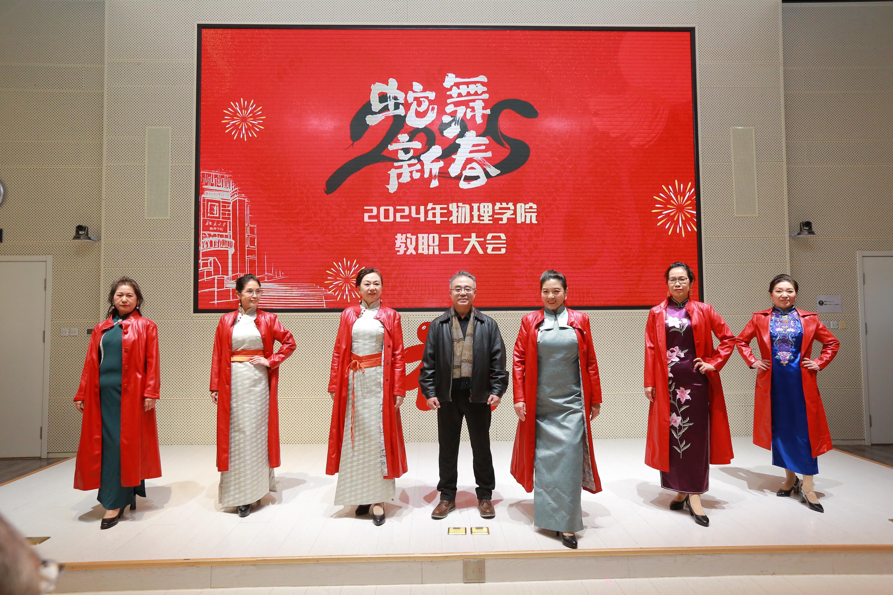 物理学院教职工、访问学者、物业工友等近300人齐聚一堂。大会分为会议和联欢两部分。