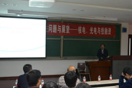 97级校友,曾任国际半导体设备与材料协会光伏行业首席分析师等职,现在担任联合国工业发展组织资本运作与产业集成方案常州项目光伏首席顾问。刘老师从原来的物理行业逐渐到了新型的光伏半导体领域,再到金融运作行业,让我们的同学赞叹不已。太阳能光伏产业链结构以及目前发展中的状况,特别是未来新能源产业的发展吸引着大家,刘老师还结合自己从业经验给大家讲述了投资光伏产业的各种融资方式,让我们在学习物理的同时也了解了一些金融行业概况。