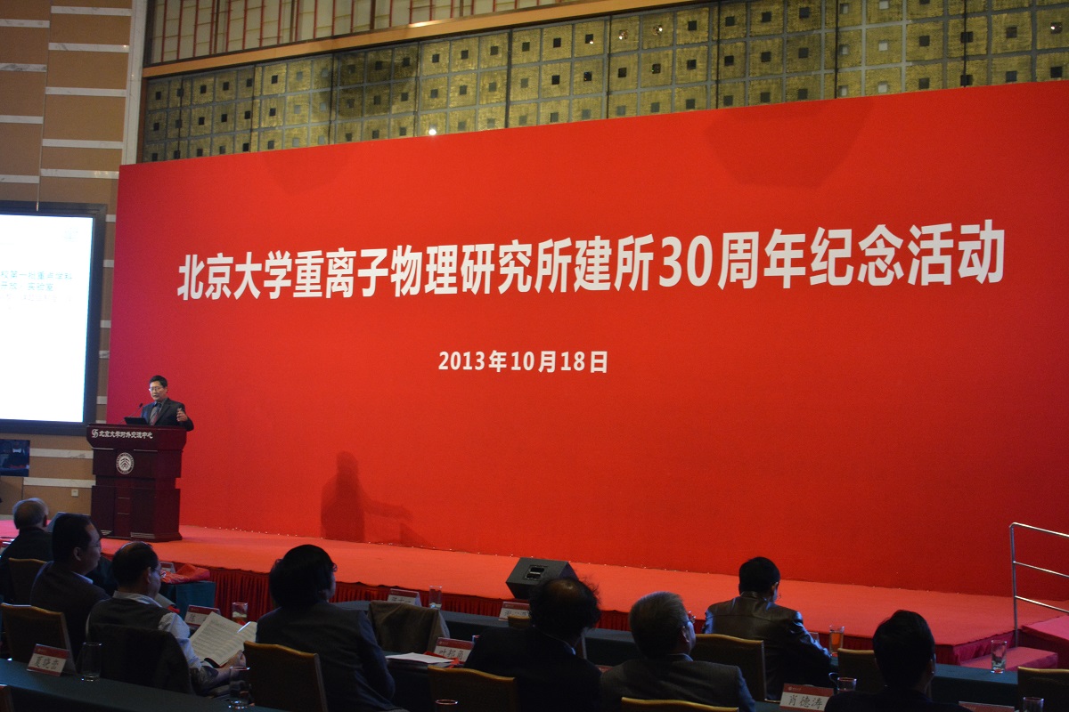 2013年10月18日,北京大学重离子物理研究所成立30周年纪念活动在英杰交流中心隆重举行,党委书记朱善璐教授发来贺信,王恩哥校长、原校长周其凤院士、高松副校长、陈十一副校长先后到会祝贺并对老校长、重离子物理研究所原所长陈佳洱院士八十虚岁寿辰表示祝贺。参加庆典活动的还有学校相关职能部门和相关院系的领导。