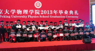 典礼的最后环节是由谢心澄院长为本科毕业生颁发毕业证书,秦国刚院士为研究生颁发毕业证书并合影留念,并向在场的师长表达自己离别之际的感恩之情。至此,物理学院2013年毕业典礼在感人温馨的气氛中圆满结束。