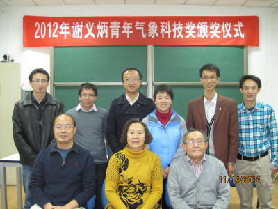 2012年谢义炳青年气象科技奖颁奖仪式于11月15日下午举行。谢义炳先生的女儿北京市气象局谢庄研究员,北京大学物理学院大气与海洋科学系主任胡永云教授,北京大学物理学院大气与海洋科学系陶祖钰教授,来自各气象类院校和科研单位的获奖人员以及大气与海洋科学系的部分师生参加了颁奖仪式。
