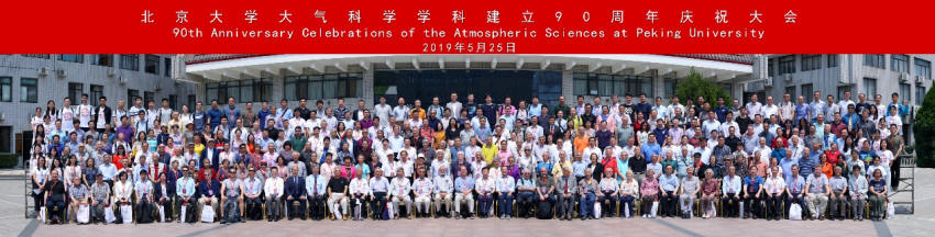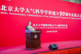 自1929年,北京大学大气科学学科已走过了90个春秋。本着回顾历史、总结经验教训、展望未来发展的目的,北京大学物理学院大气与海洋科学系于2019年5月25日隆重举行了“北京大学大气科学学科建立90周年庆祝大会”。共有500余人参加了本次大会,包括300多位海内外校友、16位两院院士、20多位国际名校学者、40多位国内兄弟高校和科研院所代表、北大兄弟院系代表以及在校师生。大会由大气与海洋科学系系主任胡永云教授主持。