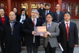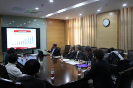 Bloch到访物院表示欢迎,他首先就物理学院情况向访问团进行介绍,之后其在会谈中表示,物理学院非常重视国际合作,在未来愿与萨克莱大学一道努力,推荐更多的学生前往深造。