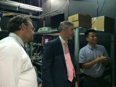 座谈会后,英国物理学会代表团一行来物理学院参观。胡小永、王新强、唐宁、江颖等老师分别陪同代表团参观了光学、凝聚态及量子材料等实验室,并向代表团介绍了各自专业领域的情况。英国代表团通过实验室参观对物理学院的学科发展有了深入的认识,对物理学院的接待表示感谢,并期待未来密切合作。