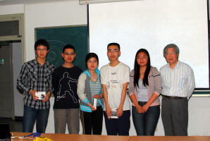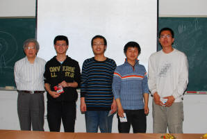 会后经过由教授和班主任组成的评委团讨论,颁给鞠文华,王栋,周萱,孙宁晨,张建东五位同学学术报告一等奖,其他报告同学获得学术报告二等奖。陈建生院士为同学们颁奖并合影留念。最后,本次活动的负责同学鞠文华为讨论会做了总结发言。本次讨论会的组织过程和现场主持完全由本科三个年级的学生自主负责;其中07级的鞠文华,08级的周恩平,09级的金逸飞组成筹备委员会,负责具体工作。本次科研讨论会的成功举办贯彻了天文系一直以来重视本科生培养及未来发展的方针,也进一步为天文系本科生科研创造了良好的氛围。