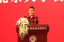 接下来,教师代表,2015级本科生年级主任李湘庆老师以学长和老师的双重身份,对新生该成为怎样的北大学生提出了三点期望。他希望同学们能成为身心健康的北大人,规律作息、保持运动;他希望同学们能成为踏实肯干的北大人,静下心里学习,克服自由散漫;他希望同学们能成为自尊自豪的北大人,继承物院传统,为物理学院发展做出贡献。