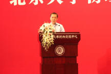 谢心澄院长首先代表学院致辞。他对同学们加入北大物院这个团结友爱的大家庭表示由衷的祝贺和热烈的欢迎。承接典礼开始前播放的《物理百年》纪录片,谢院长简要回顾了北大物理学科建立百年来的沧桑变换及其取得的举世瞩目的骄人成绩。同时,谢院长也指出,得益于经济发展、社会进步,物理人的科研环境得到极大改善,无需再置身沙漠、隐姓埋名,而可以安坐实验室追求纯粹的科学。他嘱托同学们一定要秉承历史的传承,不辜负前辈的努力,创造北大物理新的辉煌。