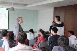 Klitzing教授及其他参会者介绍了他们的研究成果,Klaus von Klitzing教授认真听取他们的汇报,并给予相应的建议。