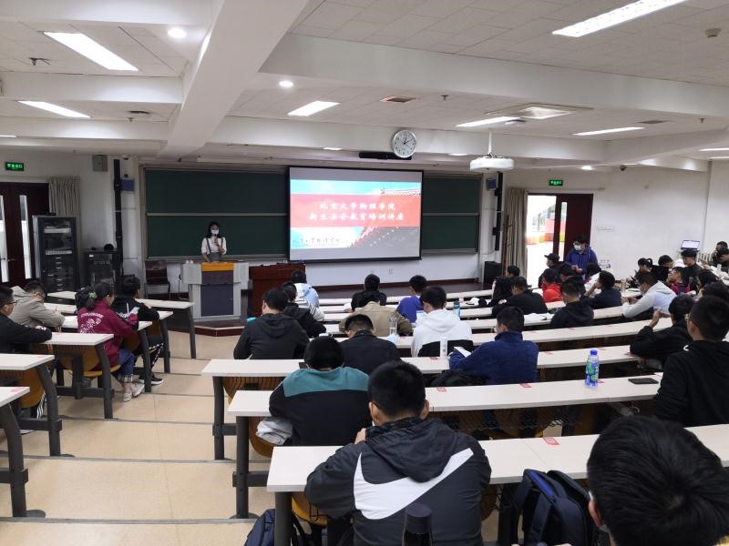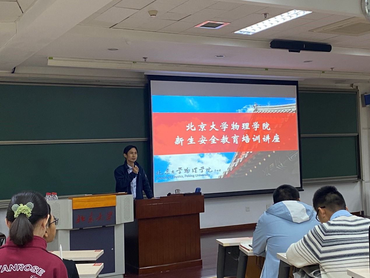 2020年10月17日下午,物理学院组织2020级新生开展安全教育培训讲座。本次讲座特别邀请燕园派出所曹爱利警官和北京大学设备部环保办刘雪蕾老师,分别就防范诈骗、实验室安全为新生进行了培训。物理学院副院长颜学庆、综合办公室张志科、学生工作办公室王凌越和本科、研究生新生200余人参加了本次活动。