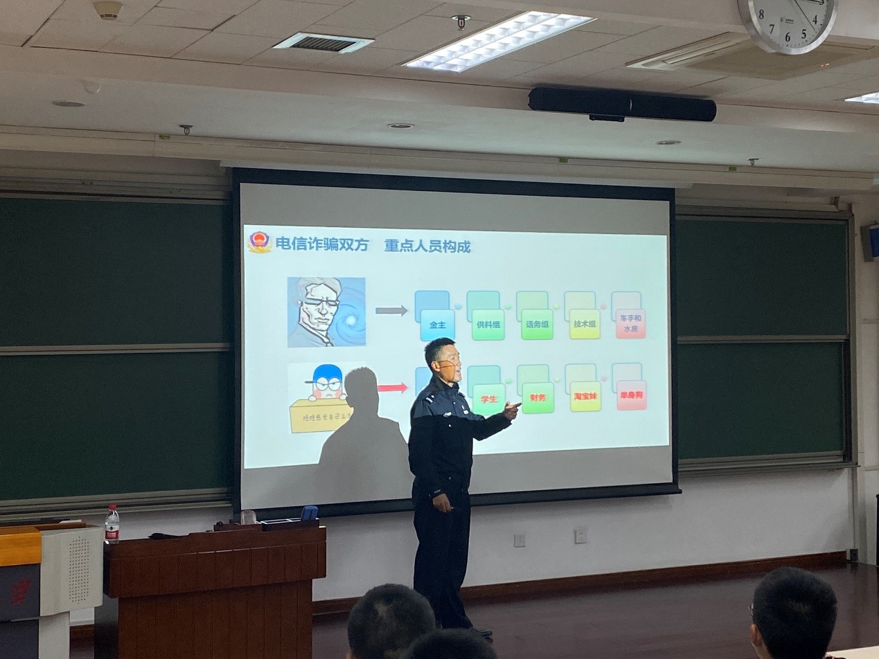 曹爱利警官为同学们普及电信诈骗预防知识