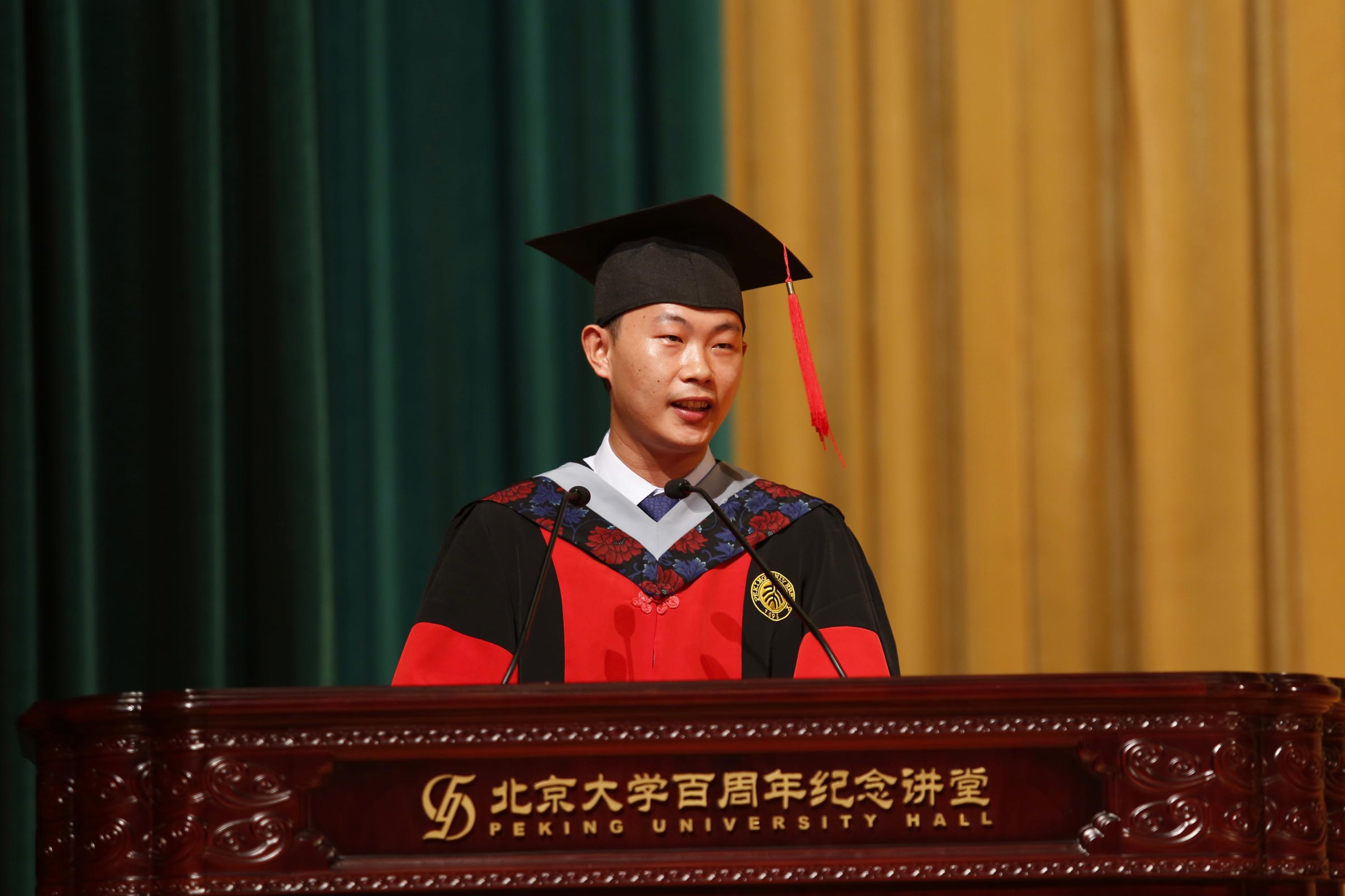 首先,请允许我代表全体博士毕业生,向诸位老师、诸位家长、诸位同窗,以及许许多多关心我们、帮助我们的朋友,致以最诚挚的谢意!是你们的关心爱护,是你们的无私帮助,是你们的尽心尽力,让今天的我们能够以自信、昂扬之姿站在这里,完成博士学业的洗礼,接受博士学位的加冕。