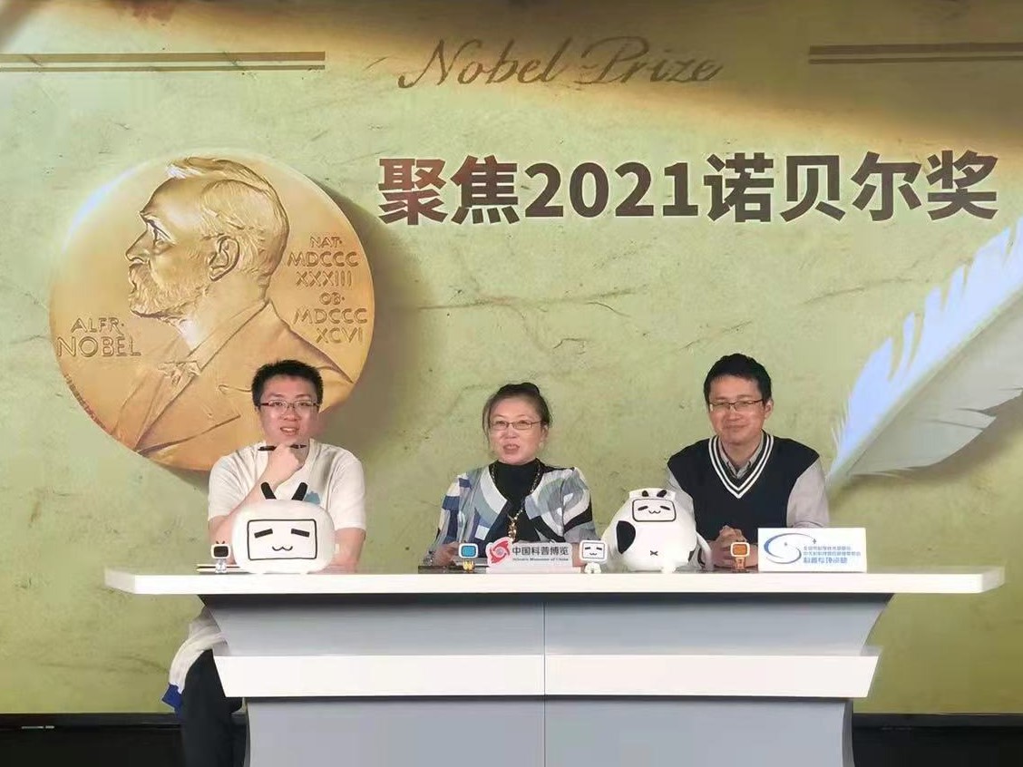 “诺奖黄金周”系列直播由微信公众号“知识分子”发起,联合今日头条、西瓜视频和抖音出品;“聚焦2021诺贝尔奖”直播由哔哩哔哩“知识区”和中国科学院格致论道讲坛联合出品,得到北京市科学技术委员会、中关村科技园区管理委员会科普专项资助。