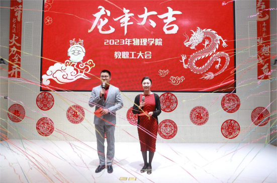 北京大学校长龚旗煌院士,物理学院院长高原宁院士、党委书记刘雨龙等党政领导班子成员和教职工、离退休教师代表、物业工友等280余人欢聚一堂。大会分为全体会议和联欢活动两部分。