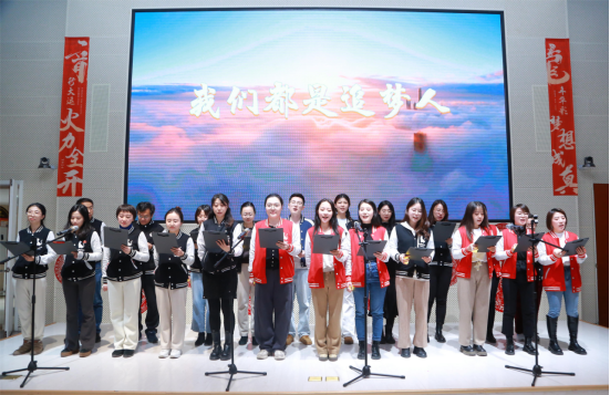 联欢活动的最后,即将迎来本命年的老师们被簇拥到台前,携手分切生日蛋糕,共同迎接新年的到来,将热烈的气氛推向高潮。