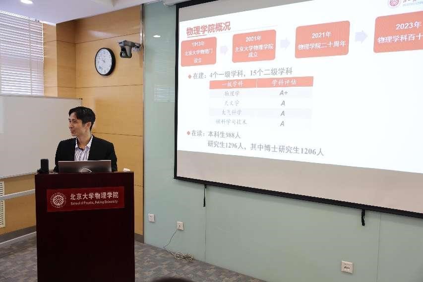 颜学庆围绕北大物理学科历史、科研进展、发展规划等方面介绍了物理学院的基本情况,重点从应用物理学的发展及科技成果产业化的落地情况等方面作了介绍。