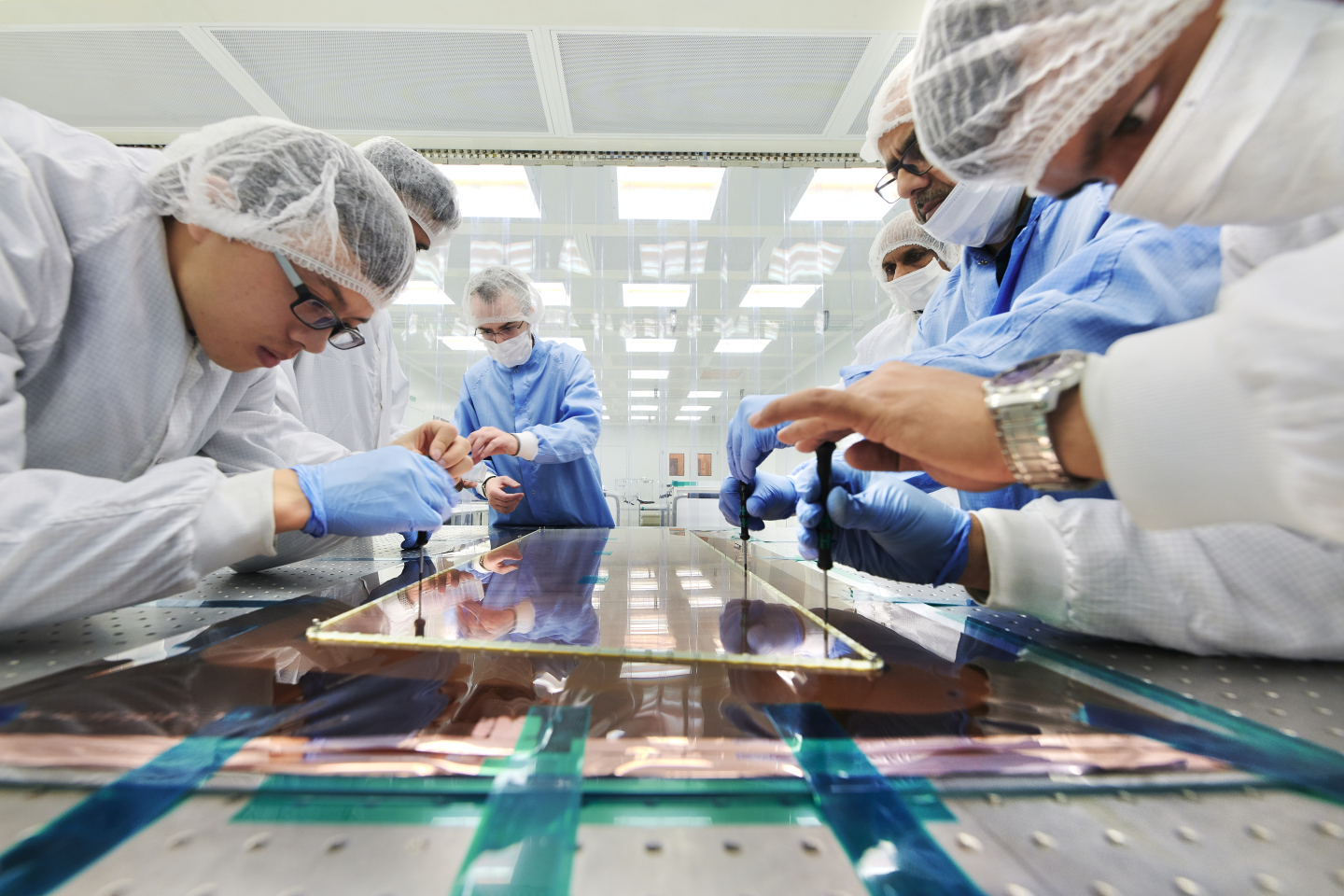 图4 学生在欧洲核子研究中心(CERN)组装紧凑缪子线圈(CMS)探测器的升级部件