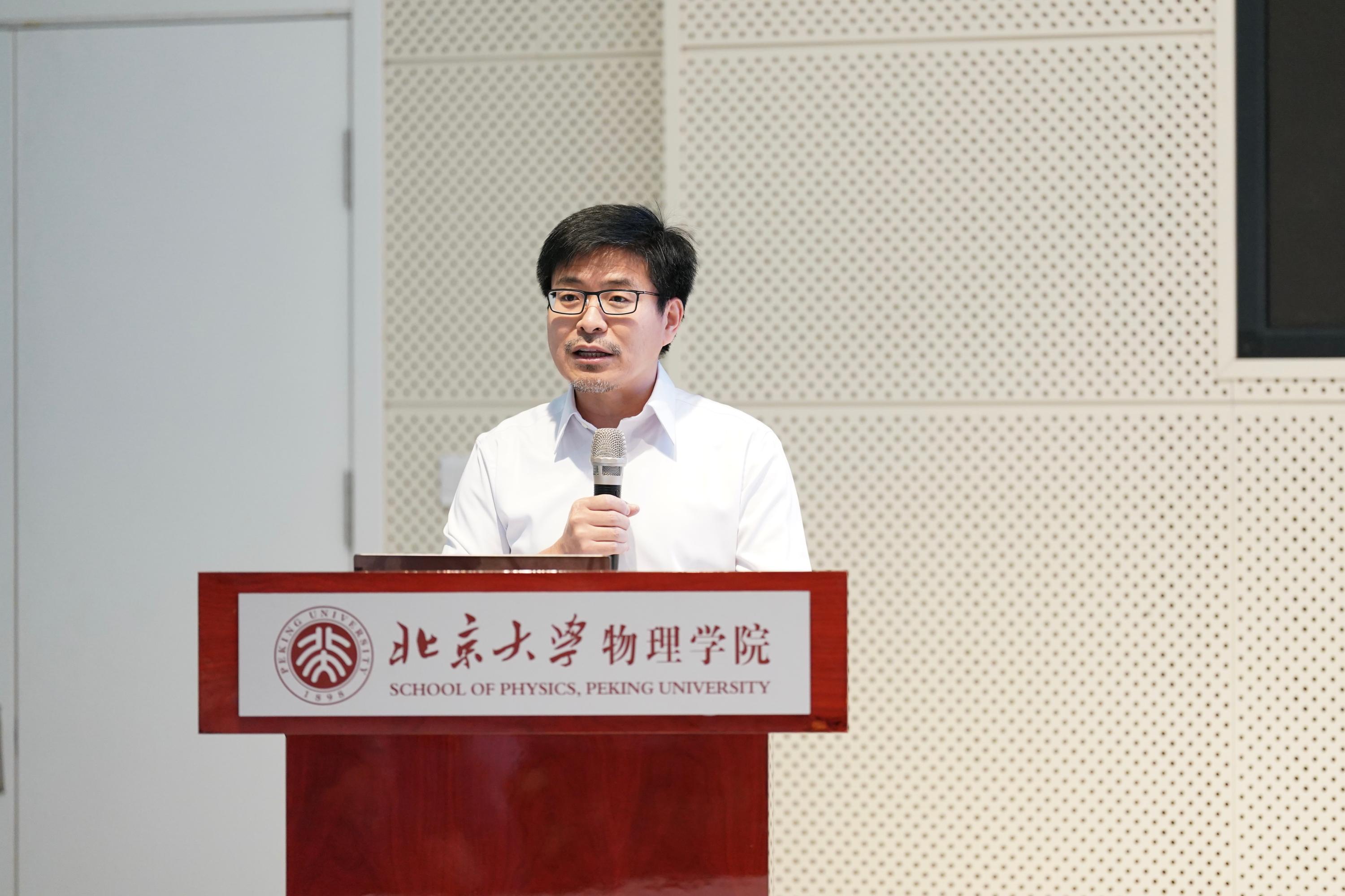 曹庆宏教授代表北京物理学会致辞,他指出,诺贝尔物理学奖解读报告会不仅为科研工作者提供了走进科学前沿的机会,又以直播的形式向公众提供了普及物理教育的契机,历届解读报告会的成功举办,都离不开北京地区高校和中学的大力支持。