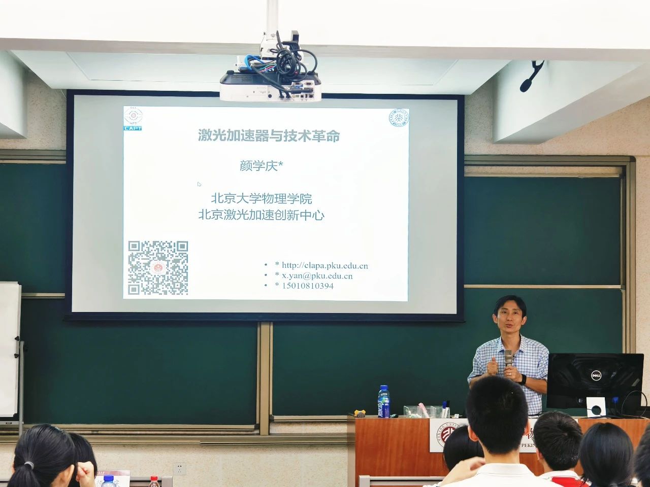 5月18日下午,科普报告“激光加速器与技术革命”在北京大学物理学院中楼212报告厅顺利举办。讲座邀请了中央民族大学附属中学师生。本次讲座主讲老师为北京大学博雅特聘教授、物理学院副院长、核物理与核技术国家重点实验室副主任、北京及激光加速创新中心主任颜学庆教授。在讲座中,颜学庆老师深入浅出地介绍了粒子加速器与飞秒激光技术,特别阐述了由加速器和飞秒技术带来的现代技术革命。同时,本次活动通过北京大学视频号、PKU言之有物视频号等网络平台进行线上直播,共有25万人次观看直播。