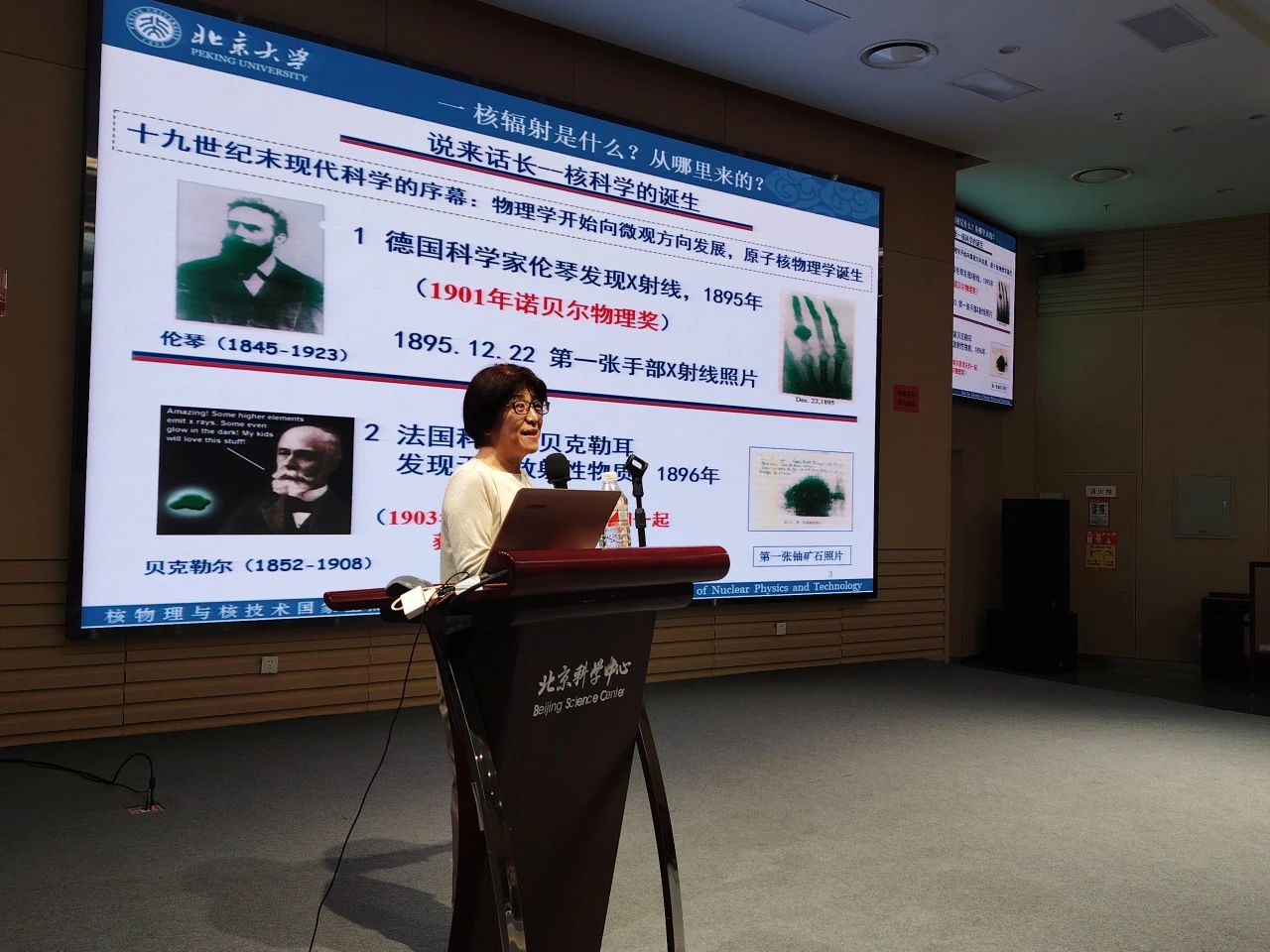 5月17日下午,北京大学第23届物理文化节“核”你相约,探物寻理系列讲座“志愿者伴我学科学——生活中无处不在的核辐射”在北京科学中心“三生”主展馆B1层报告厅顺利举办。本次讲座由北京大学物理学院和北京科学中心联合主办,主讲嘉宾为北京大学物理学院核物理与核技术国家重点实验室、教授、博士生导师郭秋菊老师。在讲座中,郭秋菊老师深入浅出地介绍了核辐射的前世今生,重点阐述了与生活密切相关的天然辐射安全问题。同时,本次活动通过北大视频号等录播、PKU言之有物视频号进行线上直播,共有20万次观看。