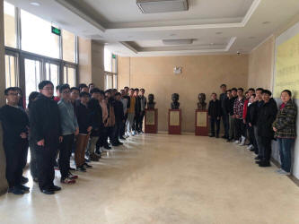 活动最后,全体师生面向朱光亚先生、胡济民先生和虞福春先生的铜像三鞠躬,致敬和缅怀前辈。