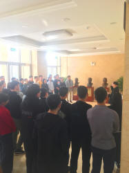 3月18日下午在加速器楼大厅,物理学院技术物理系和重离子所在职教工党支部及学生支部联合开展了一次缅怀先辈教育活动,邀请到物理学院郑春开教授为师生们介绍朱光亚先生、胡济民先生和虞福春先生的生平和事迹,师生共约50人参加。
